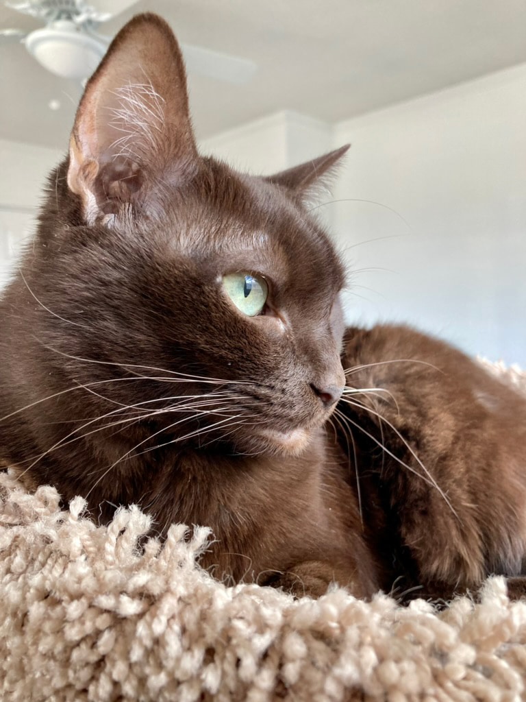 I still remember first seeing Cami in the adoption area at PetSmart—rolling around in her cage and making air biscuits, already showing how full of love she was despite the trauma she endured from a negligent breeder. She was a wonderful companion through the years, bringing comfort not only to me but also to our other cat, Tuffy, and to other humans as well.