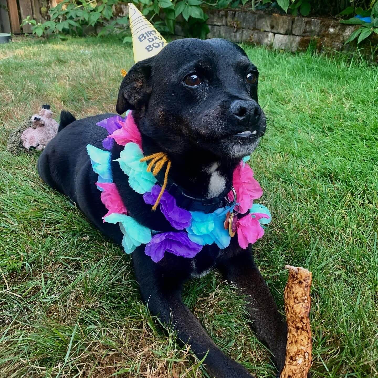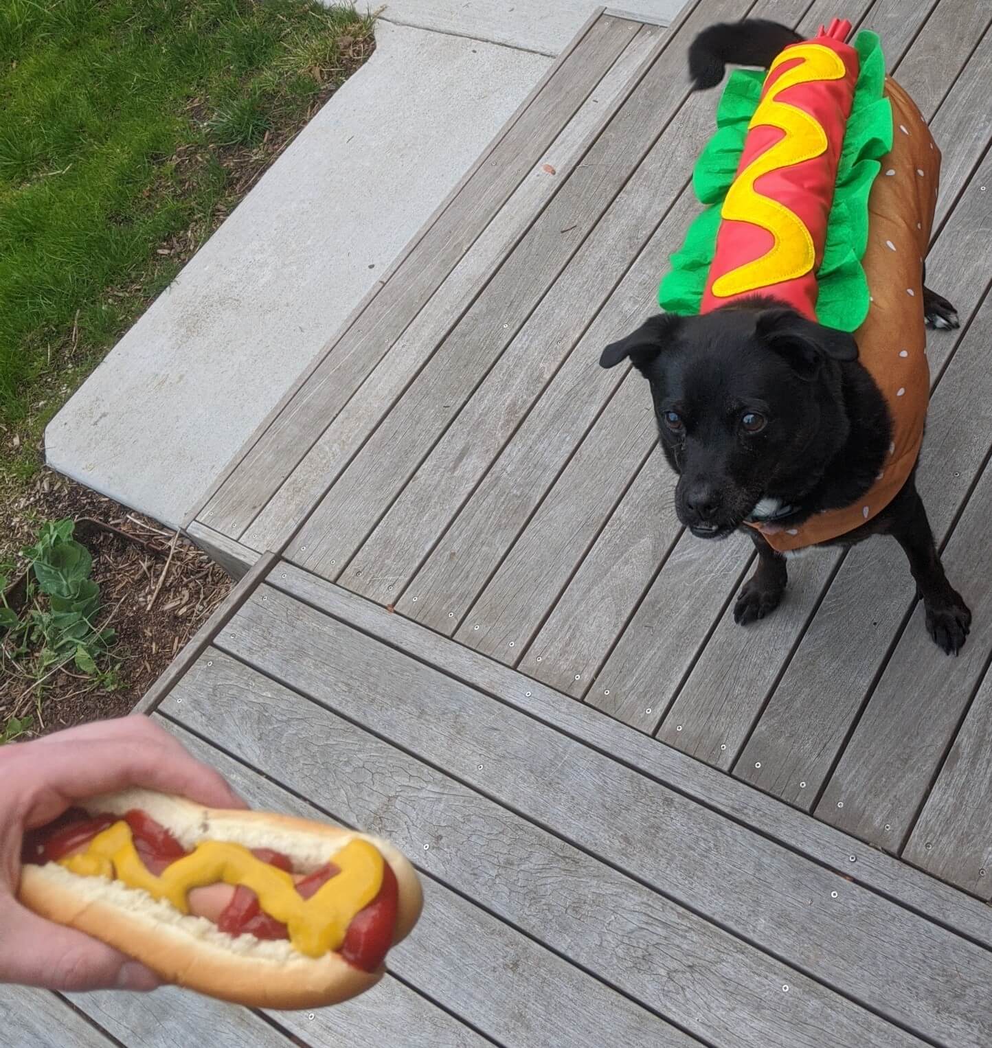 Originally from near the Oregon-California border, Zeus adopted his people at the Oregon Humane Society on November 7, 2010. As a way to give back to OHS for finding his furever family, he participated in many fundraisers throughout his life, including Santa Paws, Pug Crawl, and the OHS – Hollywood Grocery Outlet Pets-Rival Halloween costume contest, which he won in 2019, dressed as a hot dog.